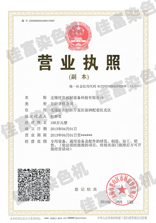 主營業(yè)務: 染色機,佳富染色機,無錫染色機,無錫佳富機械設備科技有限公司